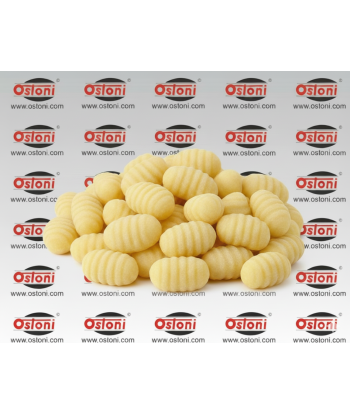 Machine appropriée pour la production de gnocchi de farine et de pommes de terre, à rainures ou lisses, avec farineur à recirculation.